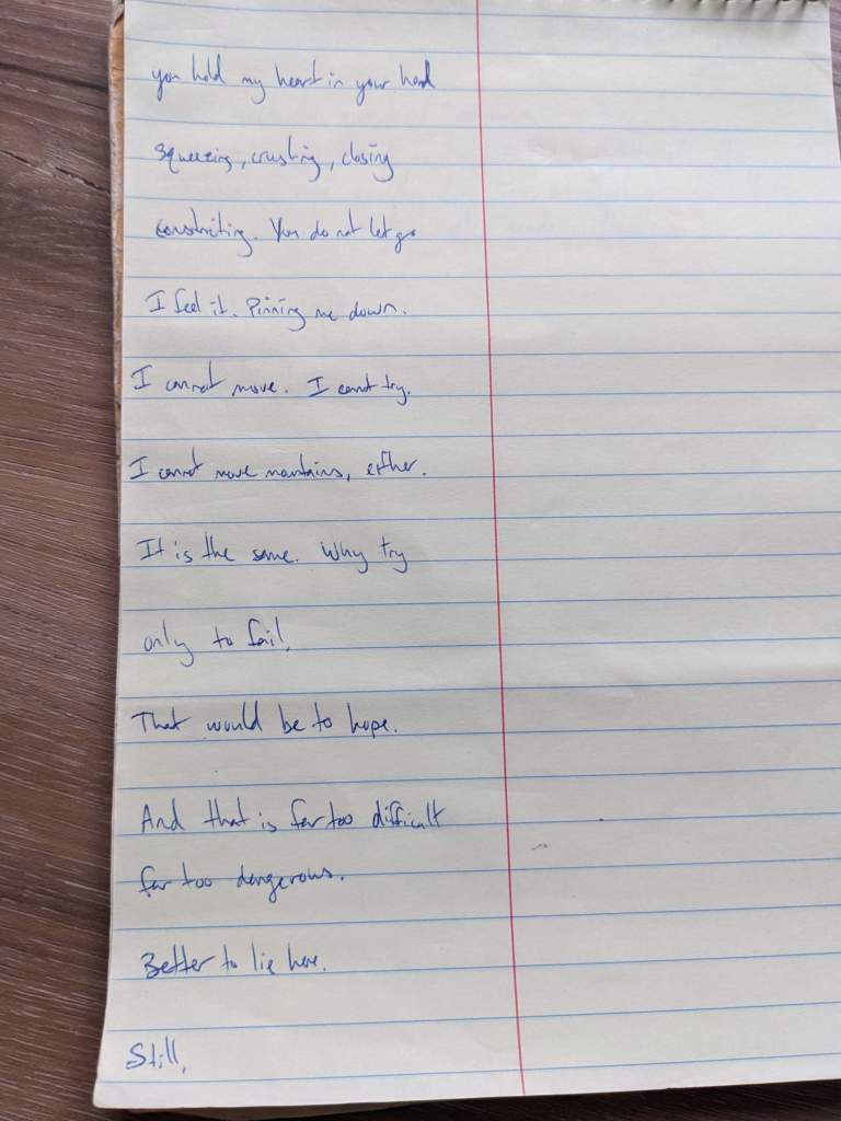 I cannot move. I cannot try.